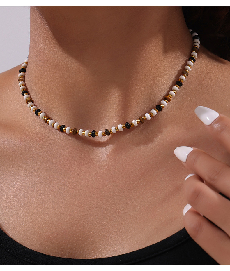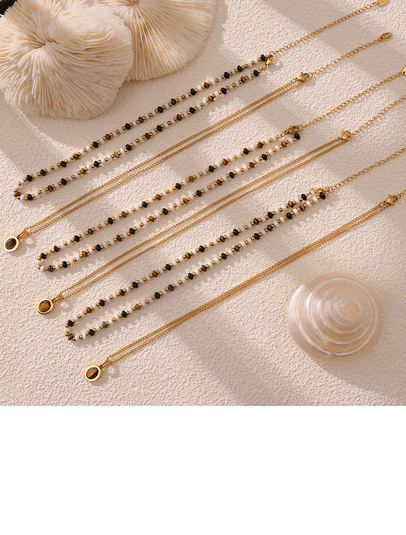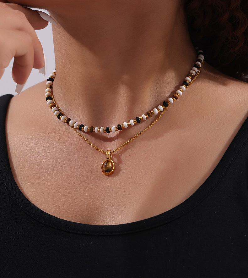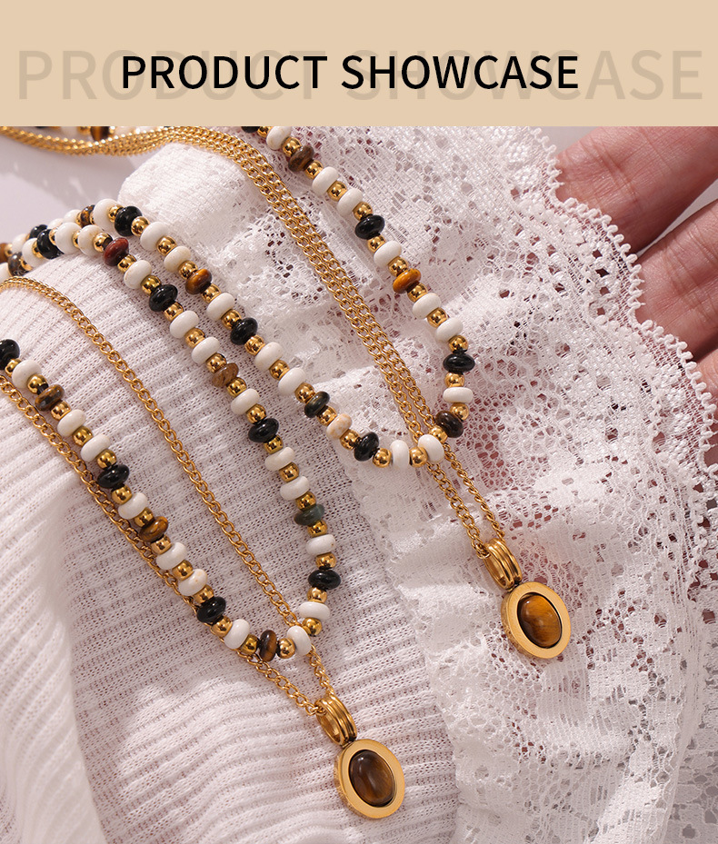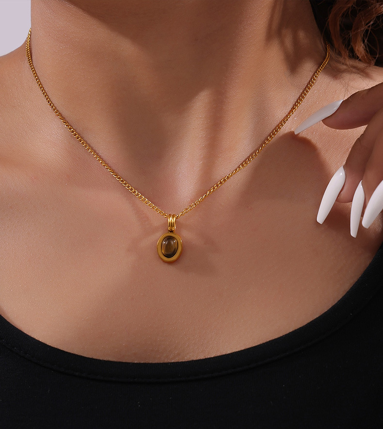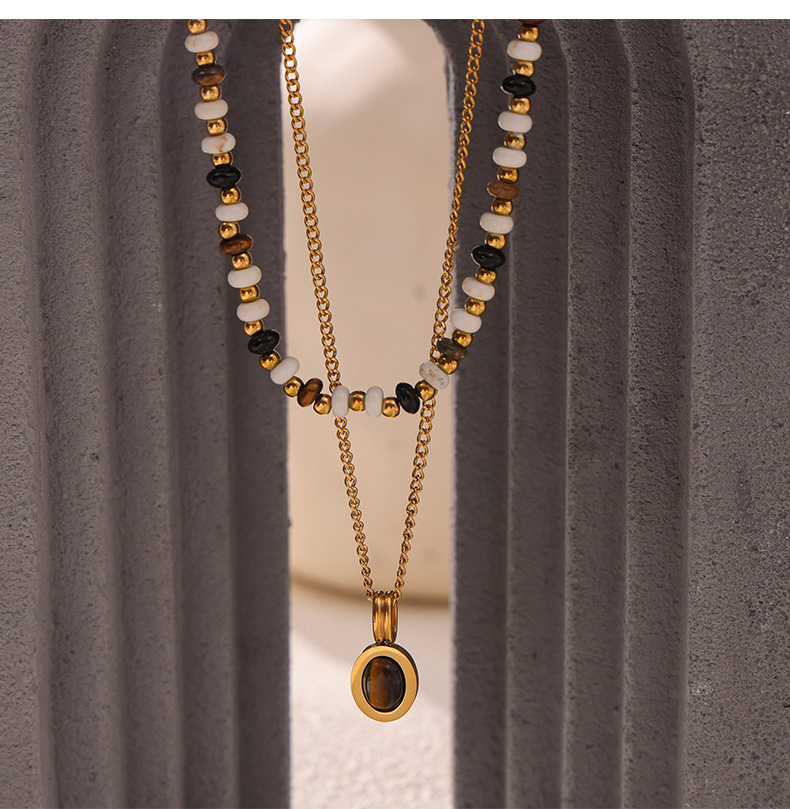 Tiger Eye Oval Pendant Double Layer Titanium Steel Necklace for Women