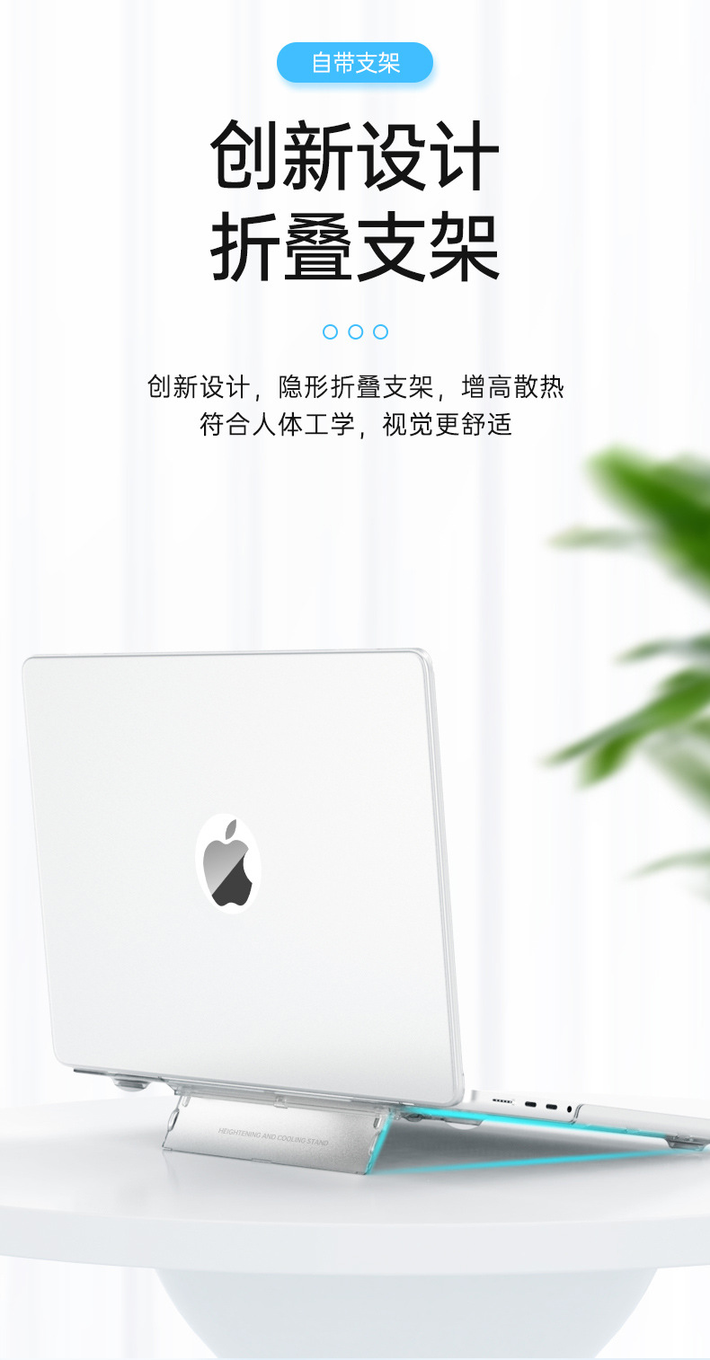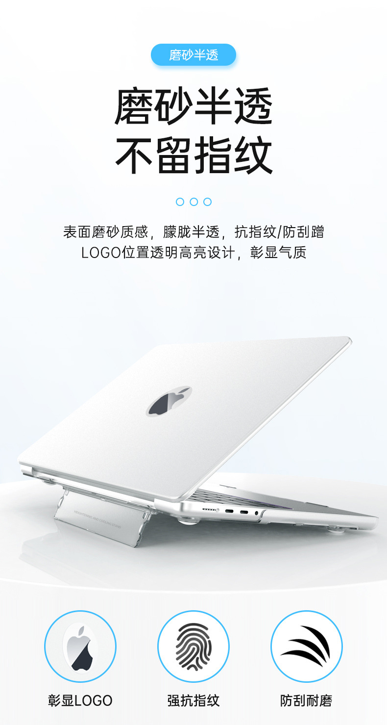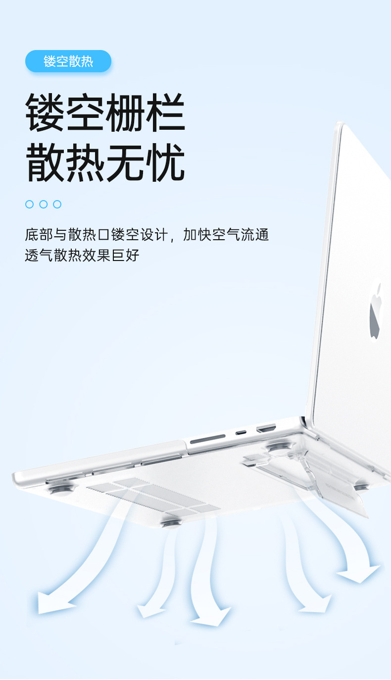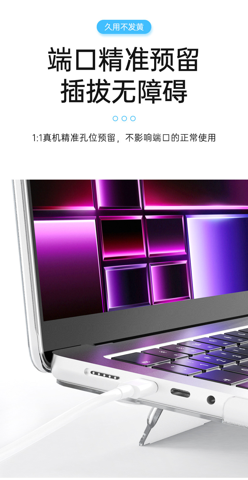 二:特点:自带支架功能,增高散热好,磨砂透明款,材质软不易变形,纯PC硬壳,8色可选,源头生产厂家