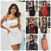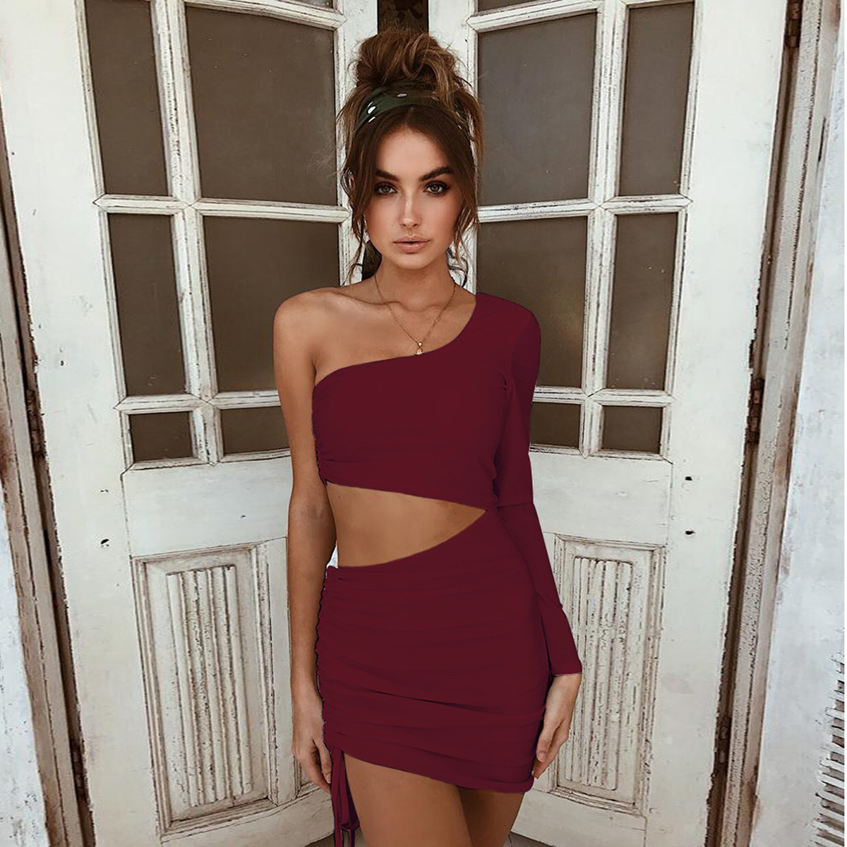 - Stylish Design:This women's dress features a sexy strap-pulling design, making it a trendy choice for the summer season. Its single shoulder length and long sleeves add a touch of elegance.