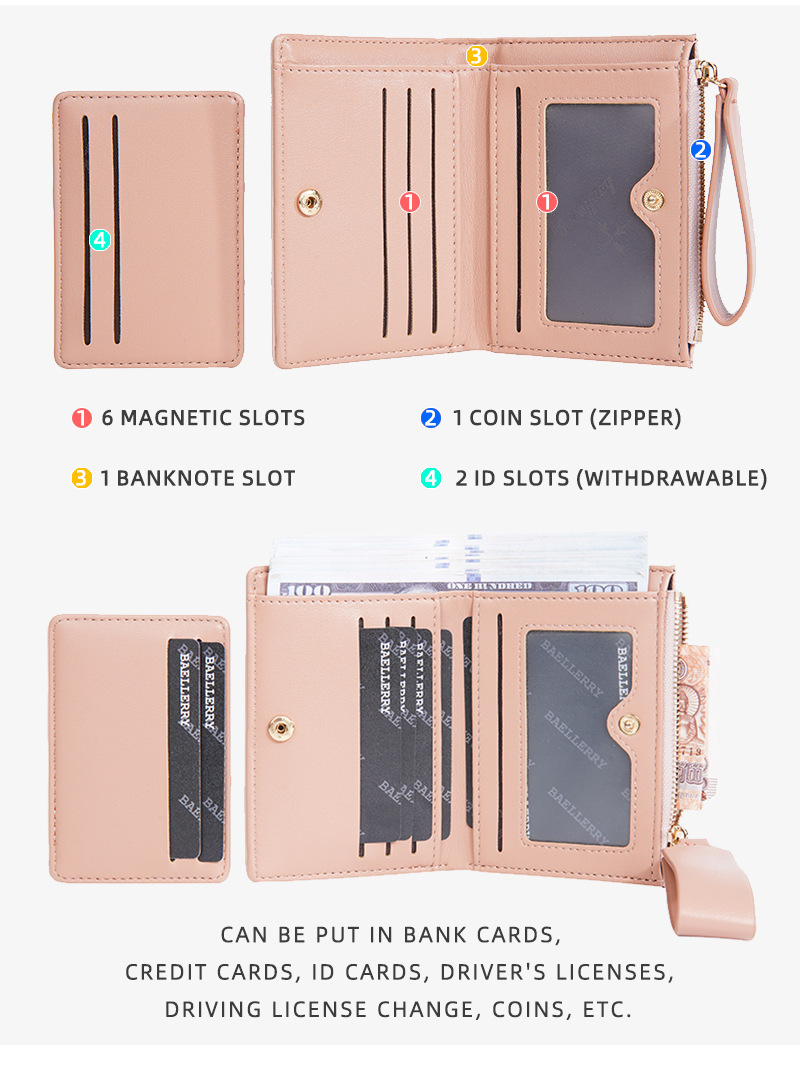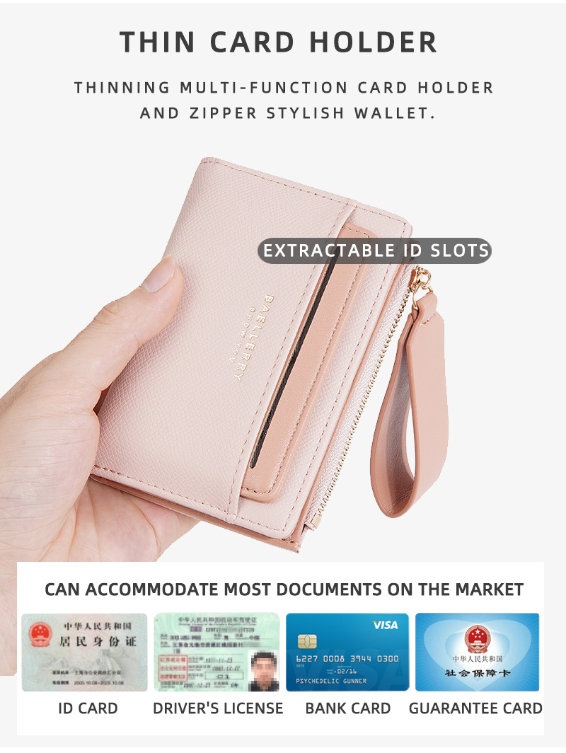 baellerry New Ladies' Purse short Zipper fashion high sense wallet multiple card slots Japanese and Korean card holder for women
