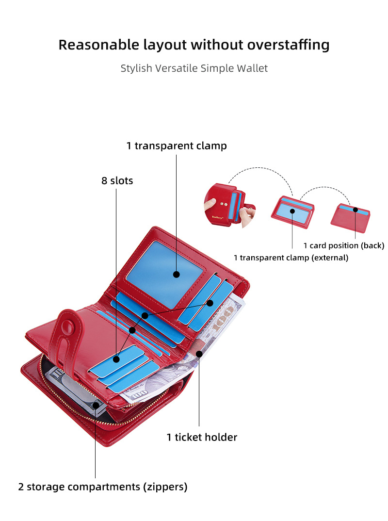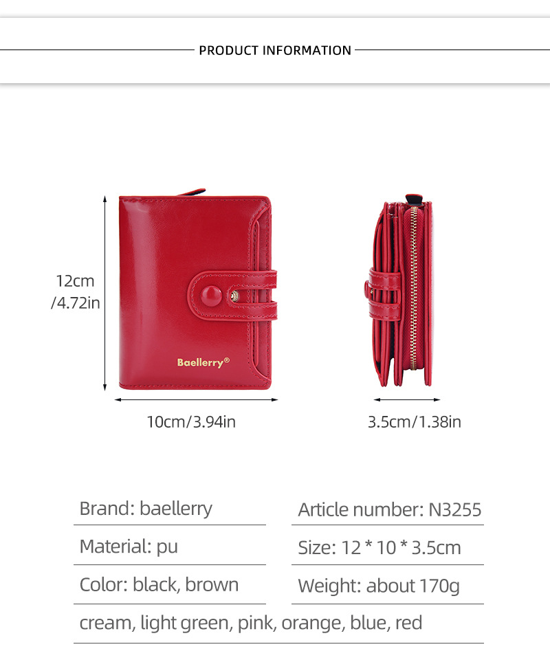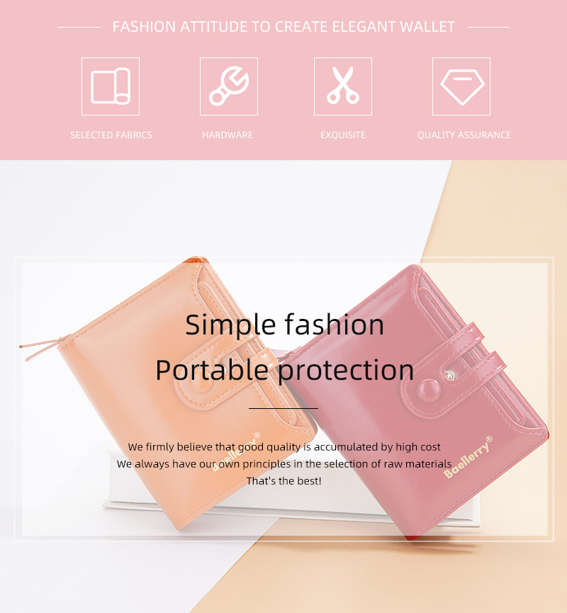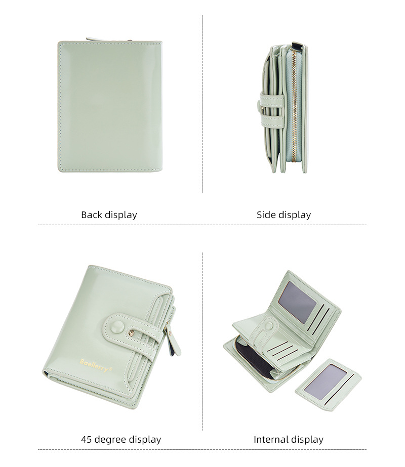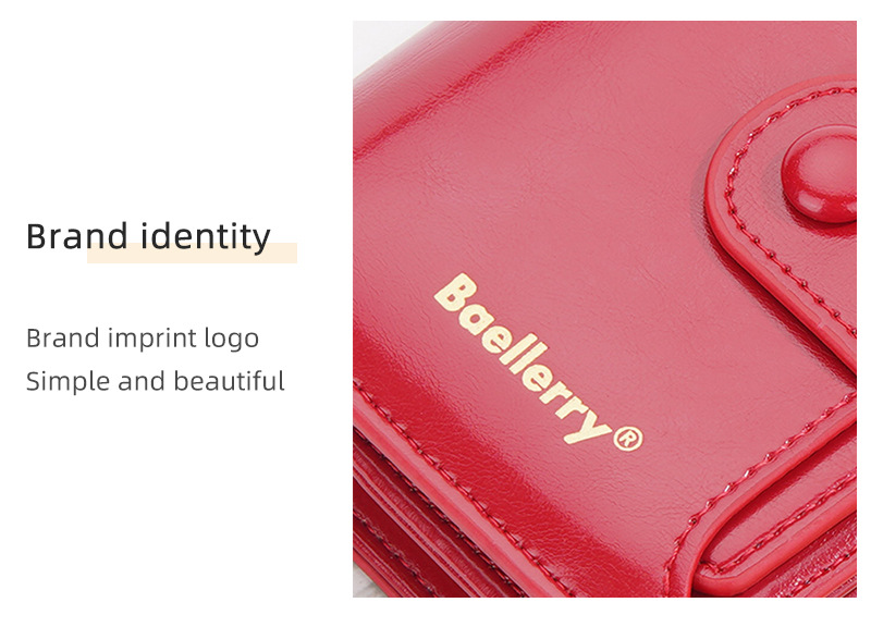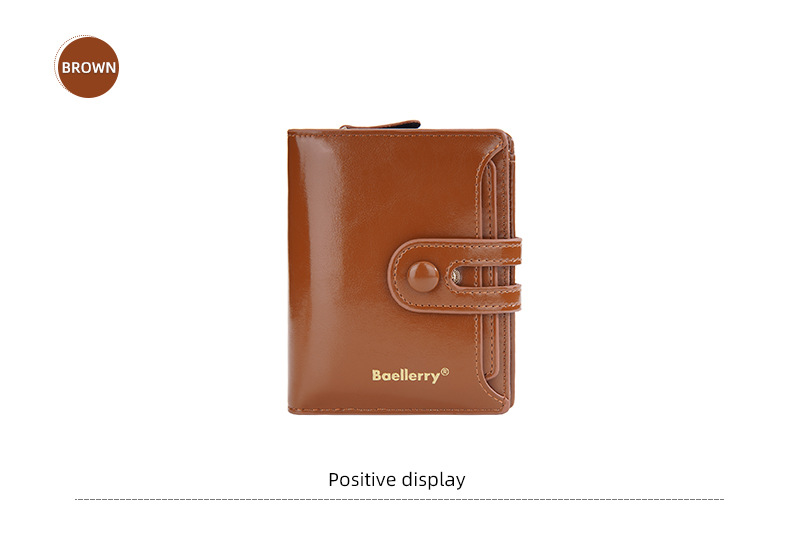 baellerry new women's short wallet glossy oil wax leather multiple card slots zipper coin purse all-matching wallet